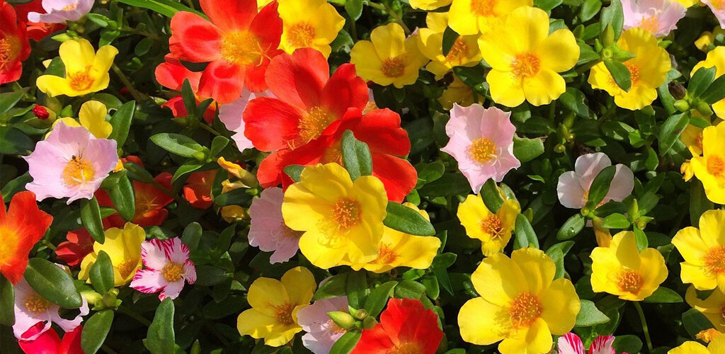 Portulak betreibt eine besonders effiziente Form der Photosynthese. Dadurch kommt er nicht nur mit Hitze und Trockenheit sehr gut klar sondern wächst auch bei extremen Bedingungen sehr gut. Das erklärt warum er selbst in kargen Steingärten üppig und farbenfroh blüht.